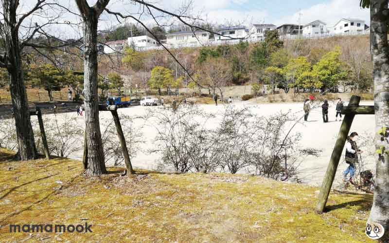 少し入ると広ーいグラウンドが見えてきました╰(*´︶`*)╯♪