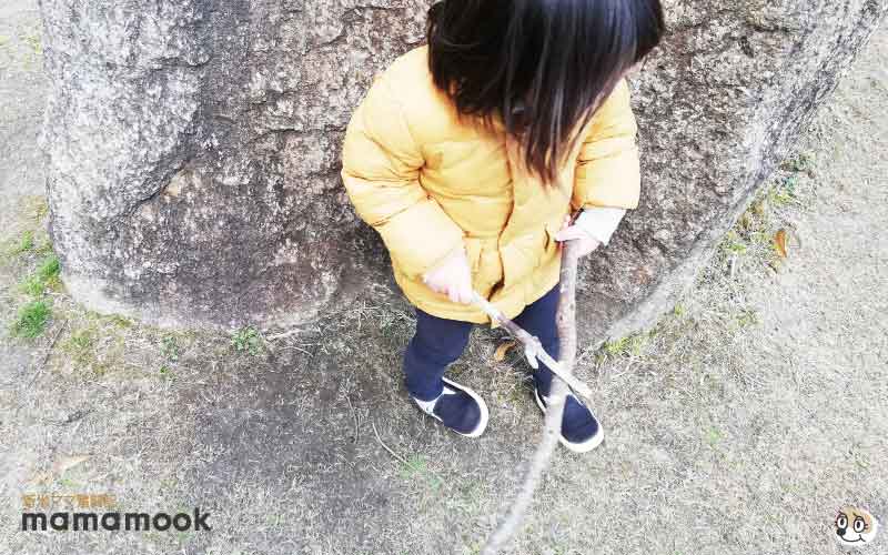 タヌぽんは知らぬ間にこんな木の枝の武器を発見していました!