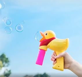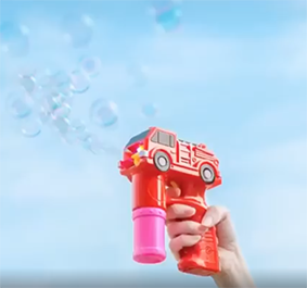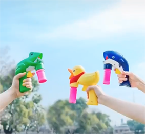 水鉄砲のように手でブシュブシュしてシャボン玉を出します。