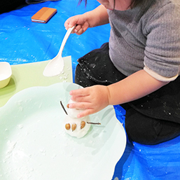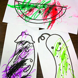 スポンジを丸く切ったものを色々な絵の具でペッタンペッタン🎶