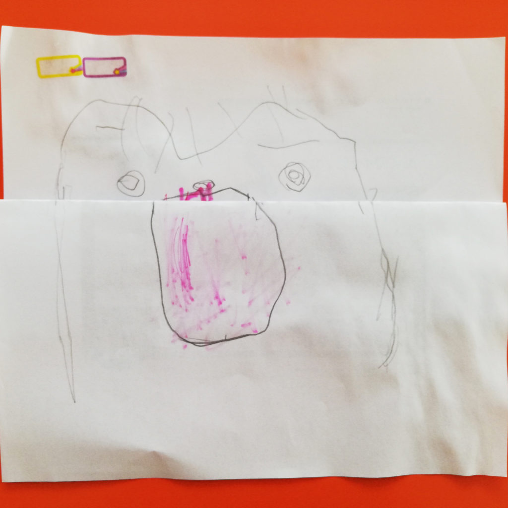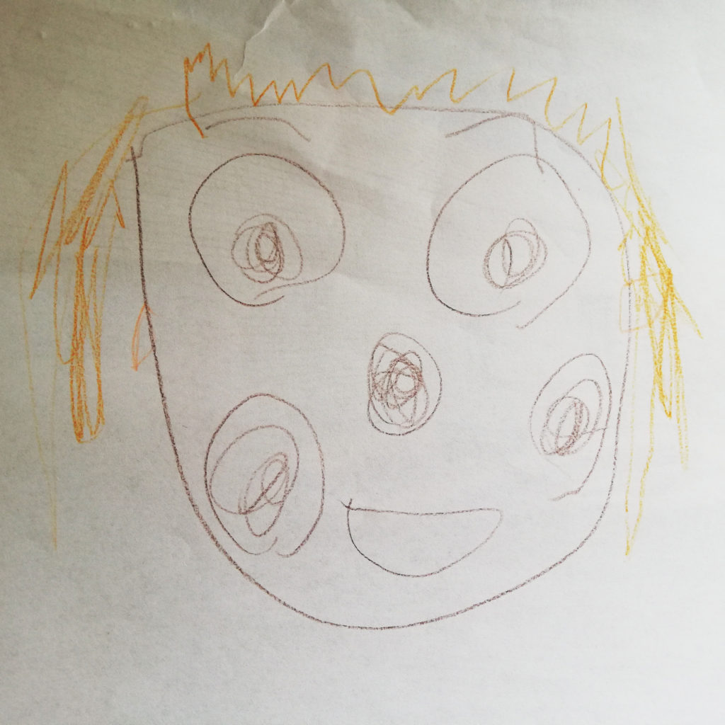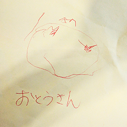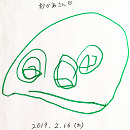 ママがプンプンしてたら「ママー!こんな顔してよー!ニコニコしてー!」と言って渡してくれた1枚><