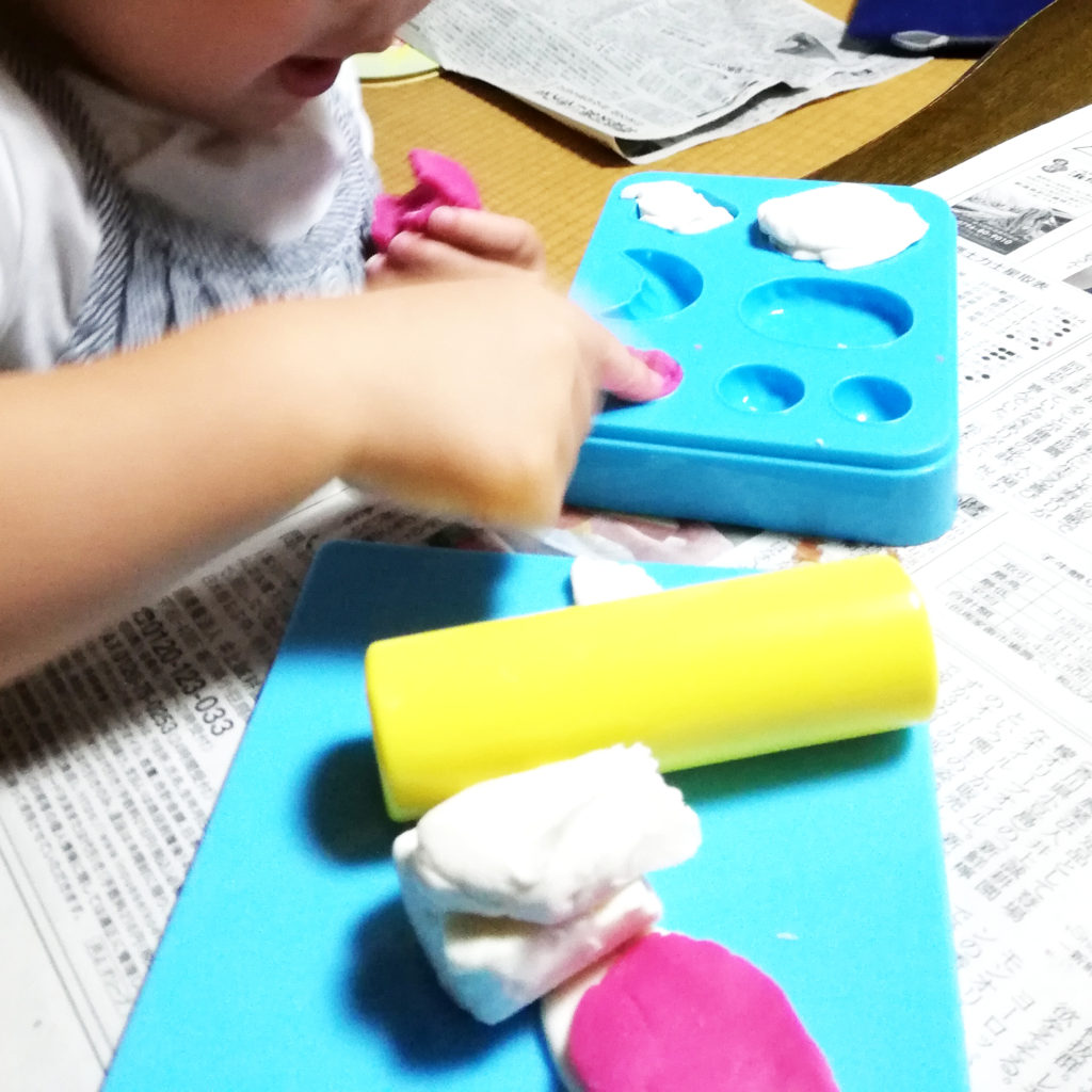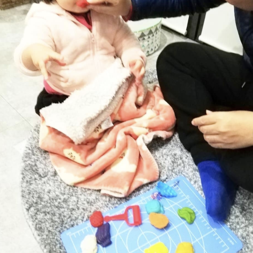 パパとねんど遊び😆・・というより遊ばれてる?😂口唇💋