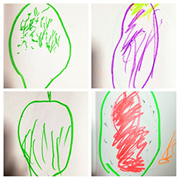 スポンジのスタンプでペッタン♪ペッタン♪3歳5ヵ月のころ