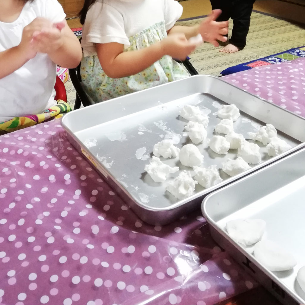 いとこちゃんとお墓参りに持っていくお団子作り😊❤️