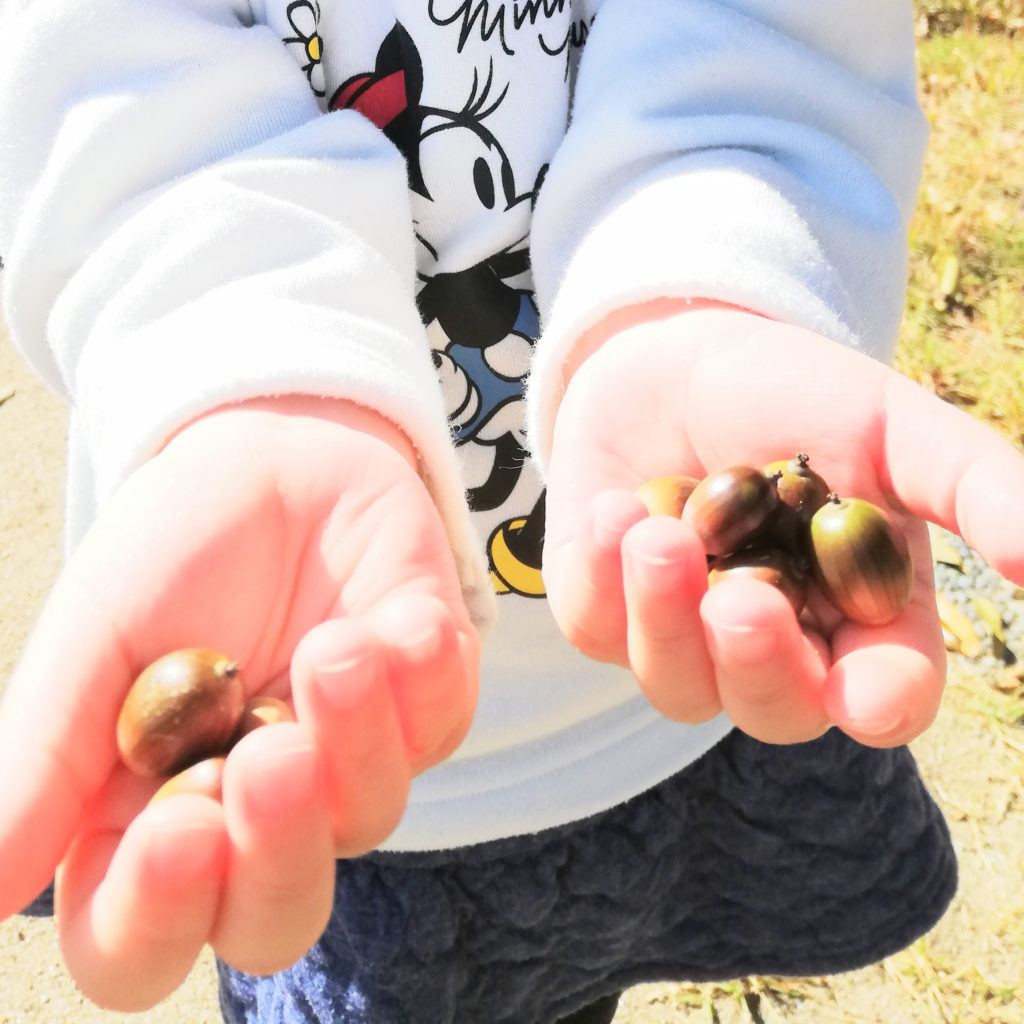 公園でドングリ拾い😊こんなに拾ったよー❤️